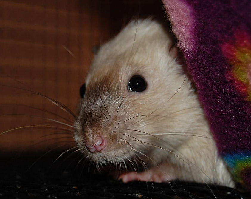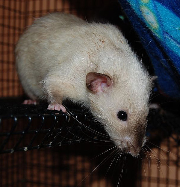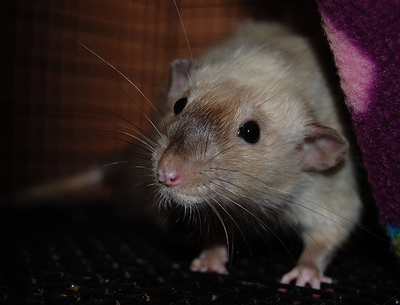 Kili's origins are a little accidental, as is how he ended up living here, but my choice to keep and love him was very deliberate. Kili's breeder, Kelsey from TOPI Rats in Oregon, called me up to ask if I could do her a favor and pick up a six week old kitten from a family in a suburb of Seattle, where we're located. For the first time in her long career as a breeder, she'd not separated males from females in a litter early enough to prevent accidental sibling breeding. I guess this litter was just anomalously precocious in that regard. Unbeknownst to her, she'd sent a pregnant female to a new home up north and the girl had produced a small but very healthy litter. Happily, all of the babies but one was female and they would go on to live with their mum and auntie and everyone was happy. But this single fellow needed to go somewhere until Kelsey could make the three hour trip up here to pick him up. I agreed to foster him until that time but, as will surprise no one who knows me, I fell in love with the little guy. He made an excellent companion to Fili, who was just a couple weeks younger, and I also had his uncle/possibly father, TOPI Ozu, living with us so it just made sense to tuck him in here where he was already feeling comfortable. He also descends from Sisu and Tehanu, who were two of my all-time favorite rats and the apple has not fallen far from the tree for sure. As he's aged, Kili has turned into an absolute stunner of a sealpoint - creamy beige body, lusciously dark chocolate points, very little white on his toes - and he's remained a lovely, kind and cuddly presence in the rat room.