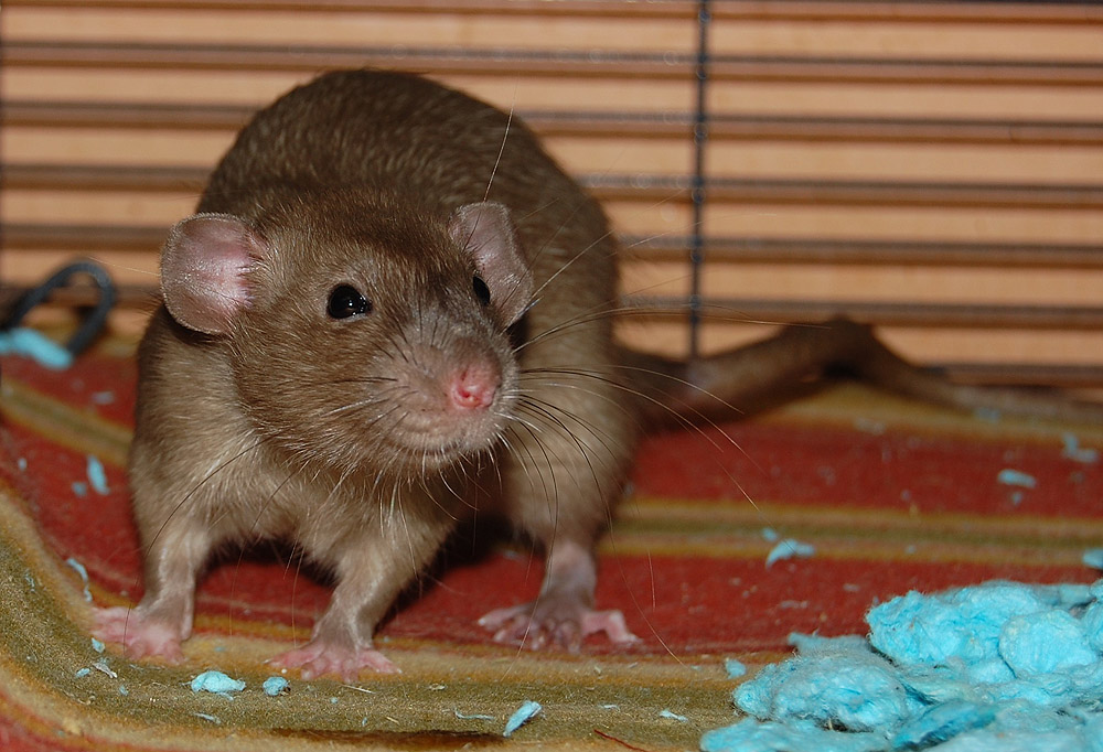 It is a truth universally acknowledged that a single rodent in possession of good whiskers must be in need of a cuddle. This little chocolatey gentleman is as handsome as Colin Firth, paws down. He is also a singular little camera ham and excellent company whether you are a rat or a human. He's the brother of our beloved Melanie and they are both delighfully friendly, inquisitive, beautiful little animals.