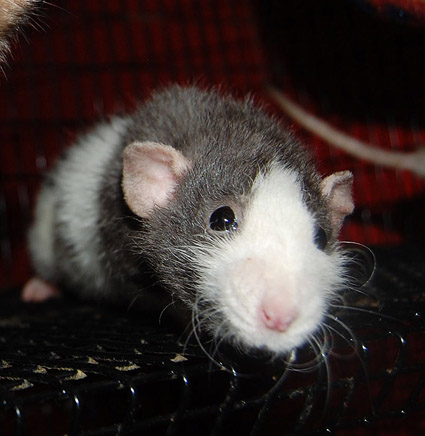 Victoire is such a sweet girl - active, sleek, friendly to rats and humans - the typical great roan personality. Jicky is a slightly young father, but from such well established lines and with such a fabulous personality that pairs so well with Victoire's that this pairing had to happen. Babies were born on April 18. There are two boys and eight girls, all roans, all dumbos and a mix of rex and smooth coat. All babies reserved for my waiting list.