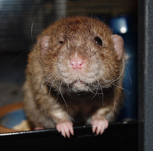 Tumbleweed is my little flossy ball of sunshine. He's always so happy to see me and wants to cuddle and groom. Many people are put off by red-eyed rats thanks to Hollywood horror movies, but literally everyone who has ever met Tumbleweed says he's beautiful. Cheryl is a chubby little doll. She's round and dainty and just good natured. I expect colorpoint dumbos in various varieties, including black and red eyes and also Martens, the amazing color changing colorpoint rats. Fur types should be smooth and rex, with all babies carrying one copy of the harley gene, which makes them extra soft. Cheryl delivered nine lovely babies on October 21, 5 girls and 4 boys on first inspection. I'm already seeing some dark Marten coats in the crew and whiskers indicate a pretty good split between smooth and curly coats. Cheryl is a very attentive mother who is also pretty easy to lure away from the babies with the promise of an especially tasty snack. In honor of Cheryl's sweet tooth, the babies will be named for sugary treats.