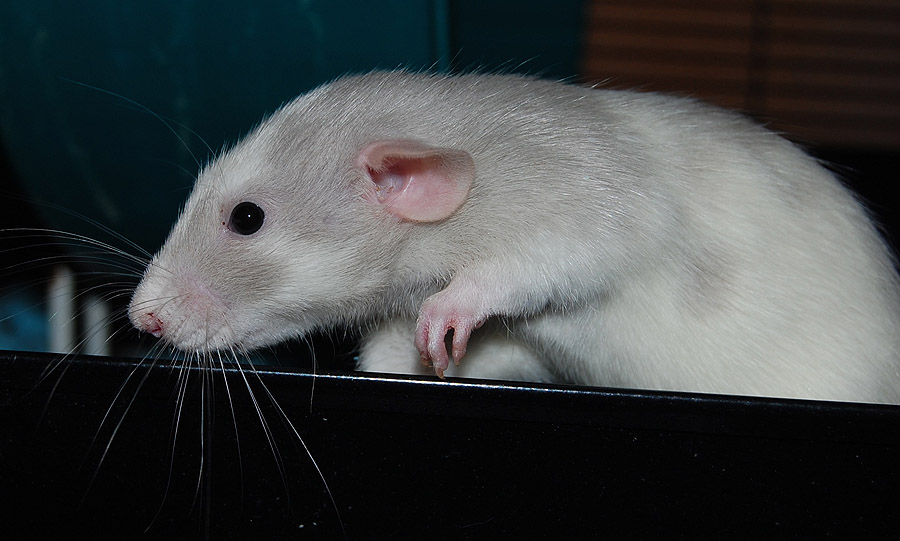 Sir Simon is as lovely on the inside as he is the outside (metaphorically speaking). He's first to the door of the cage, always excited for human attention, loves to gently wrestle with his rat buddies and is a great little camera ham. He's pretty much the perfect rat.