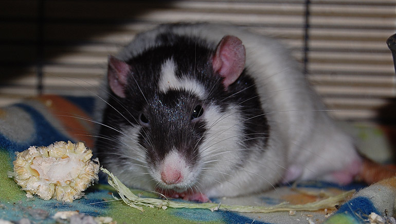 So he's not exactly an action hero, he's more of an action goofball. And he's not an international screen idol, but he is very cute and very beloved of his cagemates (when he's not being obnoxious to curmudgeonly Todd who will thence put him in his place.) He will happily "autograph" your shirt for you with his teeth if you ask. We think he's actually a miniature bandicoot given his cool markings.